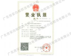 • 廣東房安白蟻防治有限公司營(yíng)業(yè)執(zhí)照